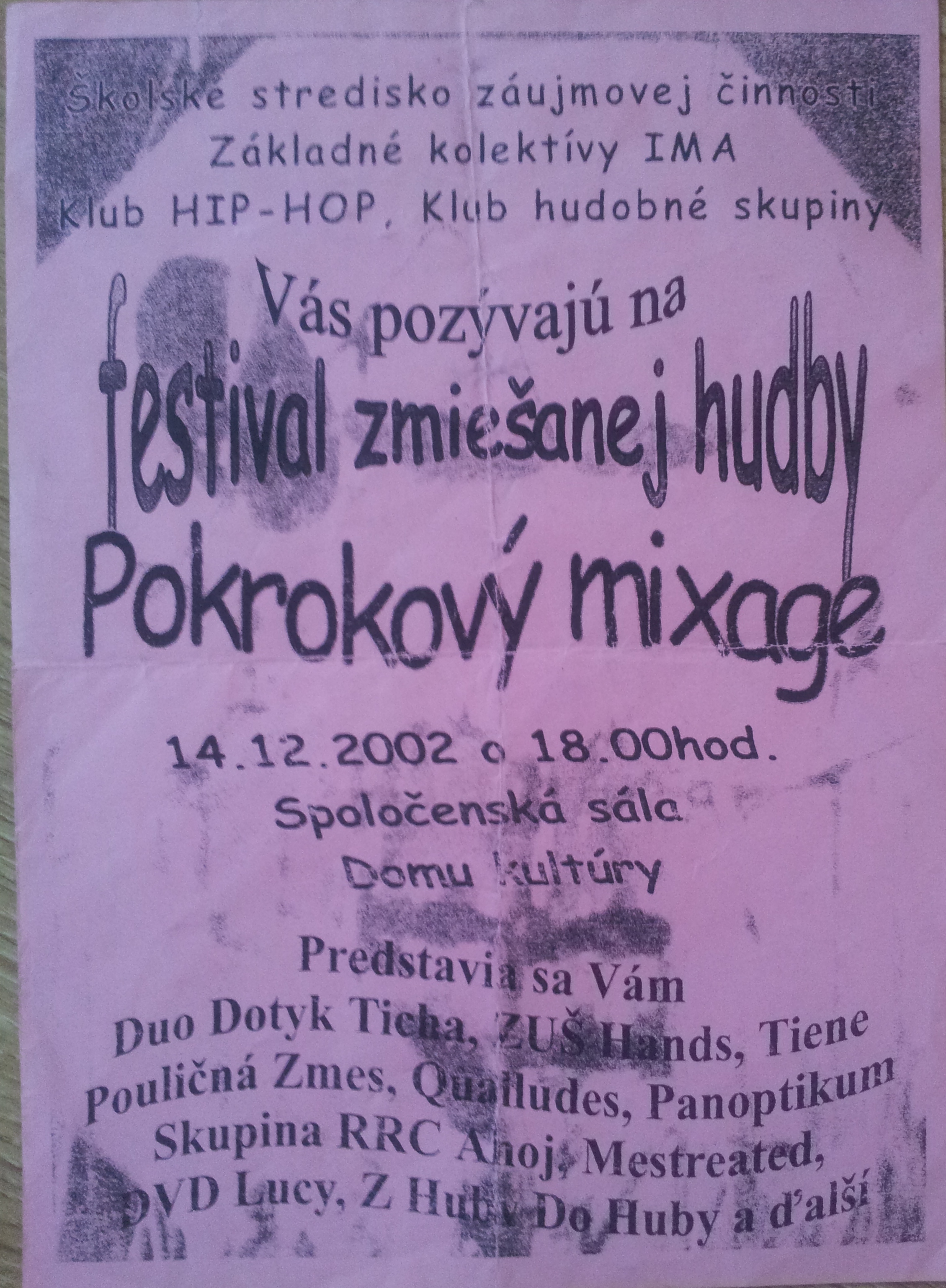 Už ako stredoškolák som sa od roku 2002 na úkor vymeškaných hodín a prospechu podieľal na organizovaní kultúrno – spoločenských podujatí v našom meste. Či už to boli koncerty a vystúpenia v Dome kultúry, alebo v rôznych podnikoch a priestoroch, ako napríklad Legenda, Dancing, Kino Mier, Sad mládeže … . Stále sa niečo dialo a mesto tým žilo. Ľudia boli úprimne vďační a radi, že sa niečo pre nich robí a má to potrebnú úroveň, ktorá si zaslúži pozornosť a ochotu zaplatiť vstupné. Pretože vtedy sa všetky náklady platili z peňazí, vyzbieraných pri vstupe. Peňažné sponzorské dary neboli a všetko trebalo poctivo zaplatiť. A našťastie sa vždy zaplatilo všetko a všetci. Žiadna z akcií nesmela vykázať zisk.